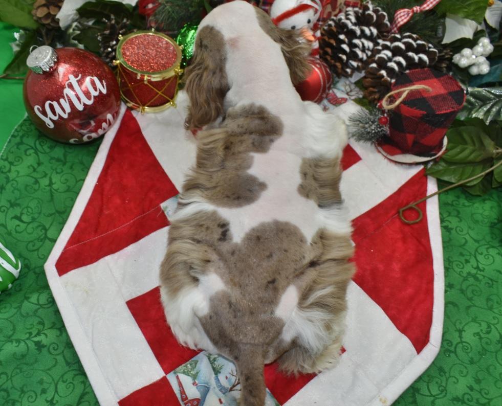 Mary’s Cocker Haven Apollo (SIRE) Chocolate Tan Parti Merle and Mary’s Cocker Haven Lucille (DAM) Red White Parti